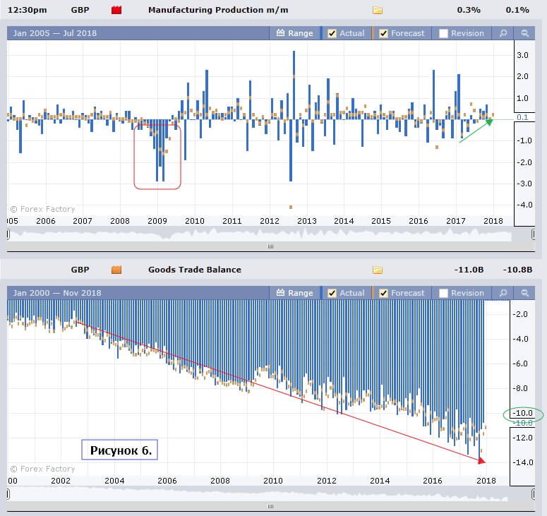 А вот данные по промышленному производству в случае укрепления выше прогноза и торговый баланс, в случае сокращения до -10 млрд. будет неплохой предпосылкой для укрепления британской валюты. Данные же хуже ожиданий, конечно, внесут отрицательный импульс в ход торгов.