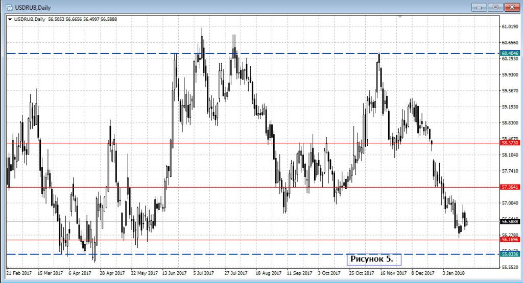 Инструменту USD/RUB предстоит ключевая поддержка 56, которую, вполне вероятно, ещё протестирует.