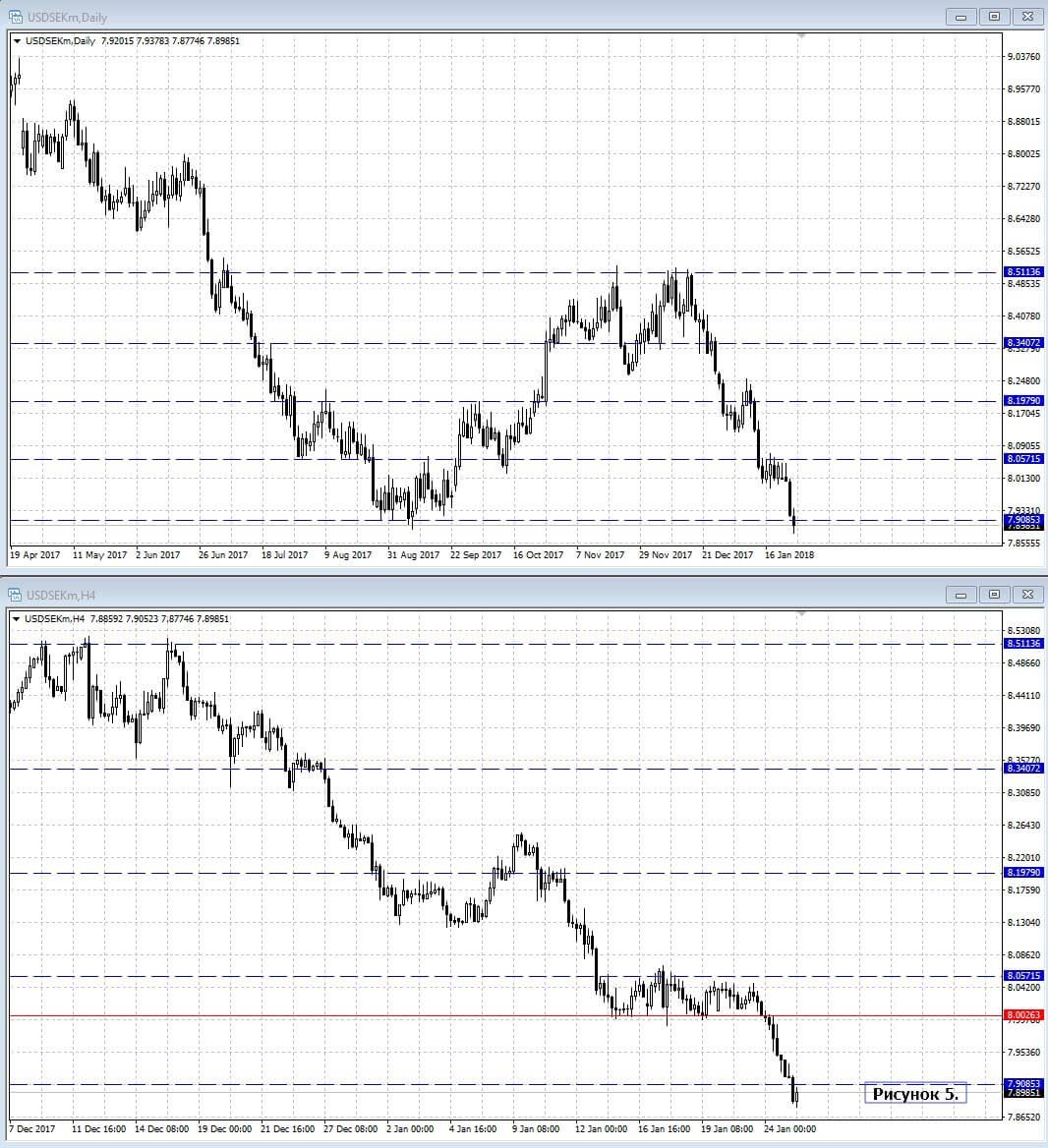 В итоге шведская крона к доллару достигает следующей ключевой цены в районе 7.90.