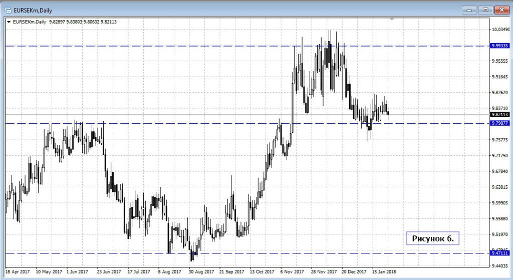 Интересно будет понаблюдать за реакцией после пресс-конференции ЕЦБ за той же шведской кроной, но только к евро. Речь идёт о ключевой цене 9.79 и сможет ли евро удержать границы пройденного уровня сопротивления.