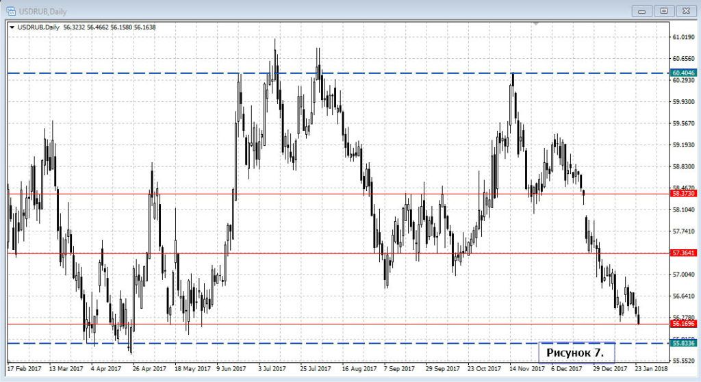 Близость ключевой поддержки в районе 55.8-56, конечно, делает российскую валюту менее склонной к тенденции, как произошло в евро или фунте, и даже несмотря на рост цен на нефть.