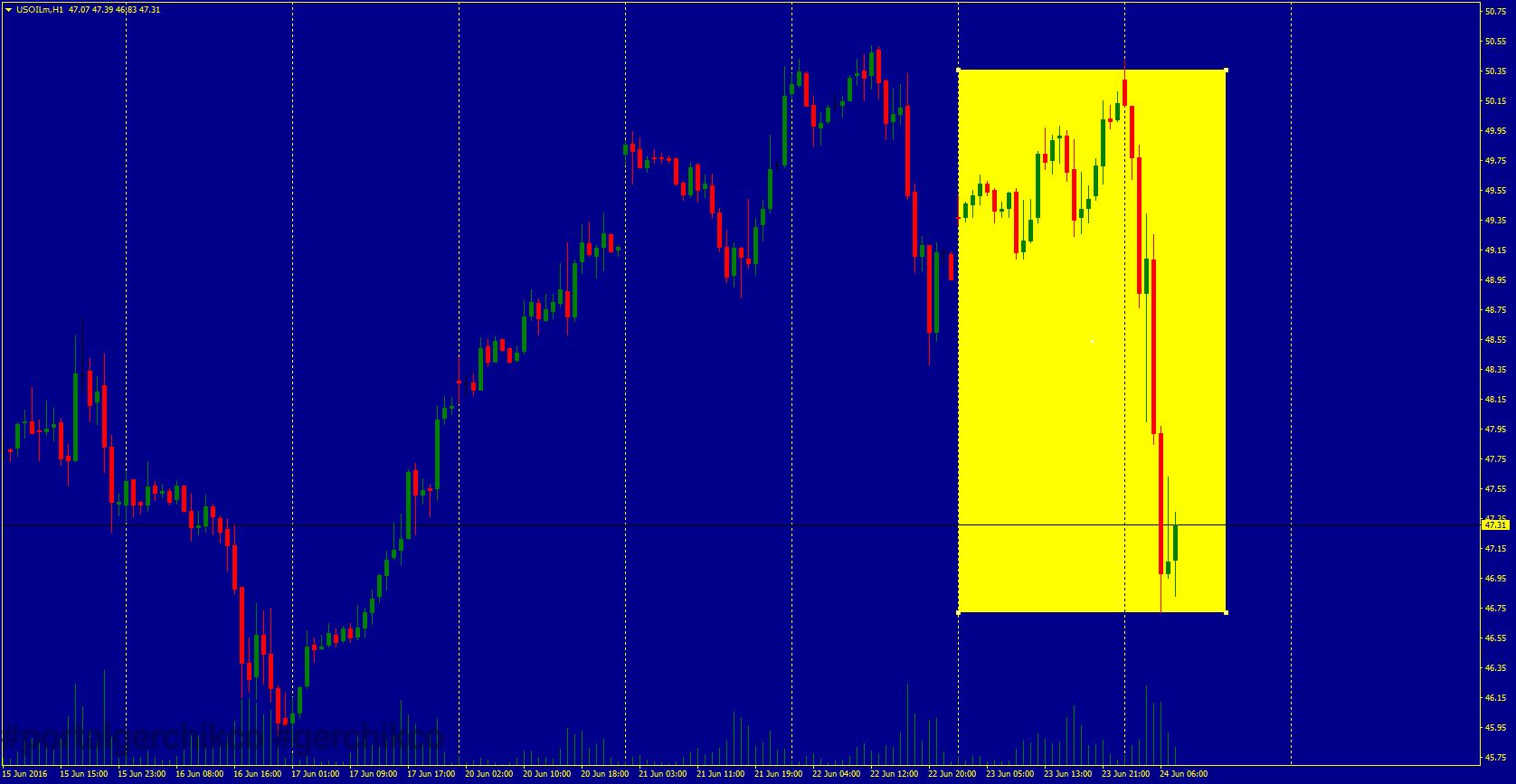 В ходе электронных торгов на Лондонской и Нью-Йоркской биржах мировые цены на нефть рухнули на фоне валютных колебаний, вызванных референдумом за выход Великобритании из Евросоюза, об этом свидетельствуют данные торгов. Торгуй на новостях без ограничений в Gerchik & Co – зарегистрируйся сейчас Августовские фьючерсы на легкую нефть марки WTI на Нью-Йоркской товарной бирже (NYMEX) упали на 6,31%, до $46,95 за баррель.