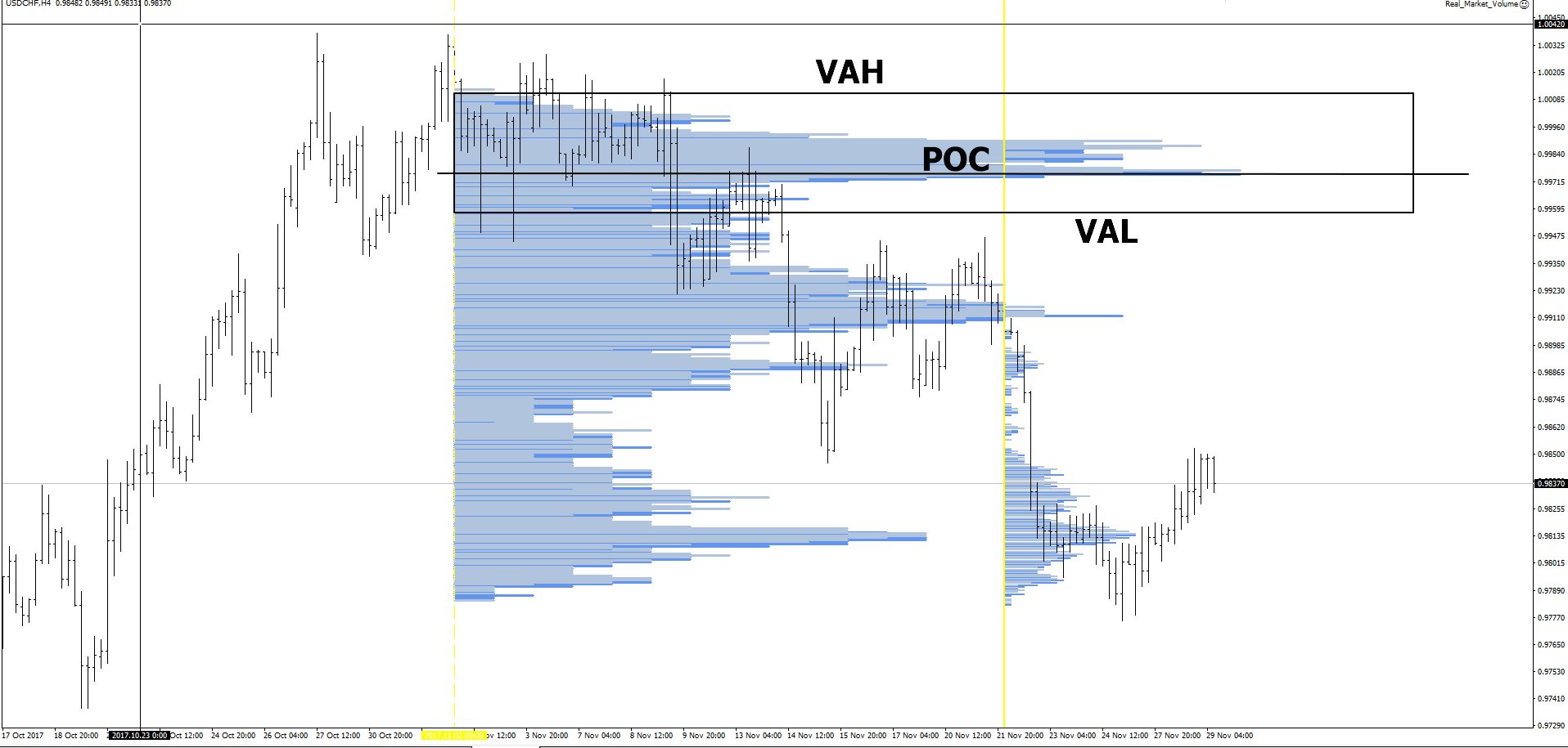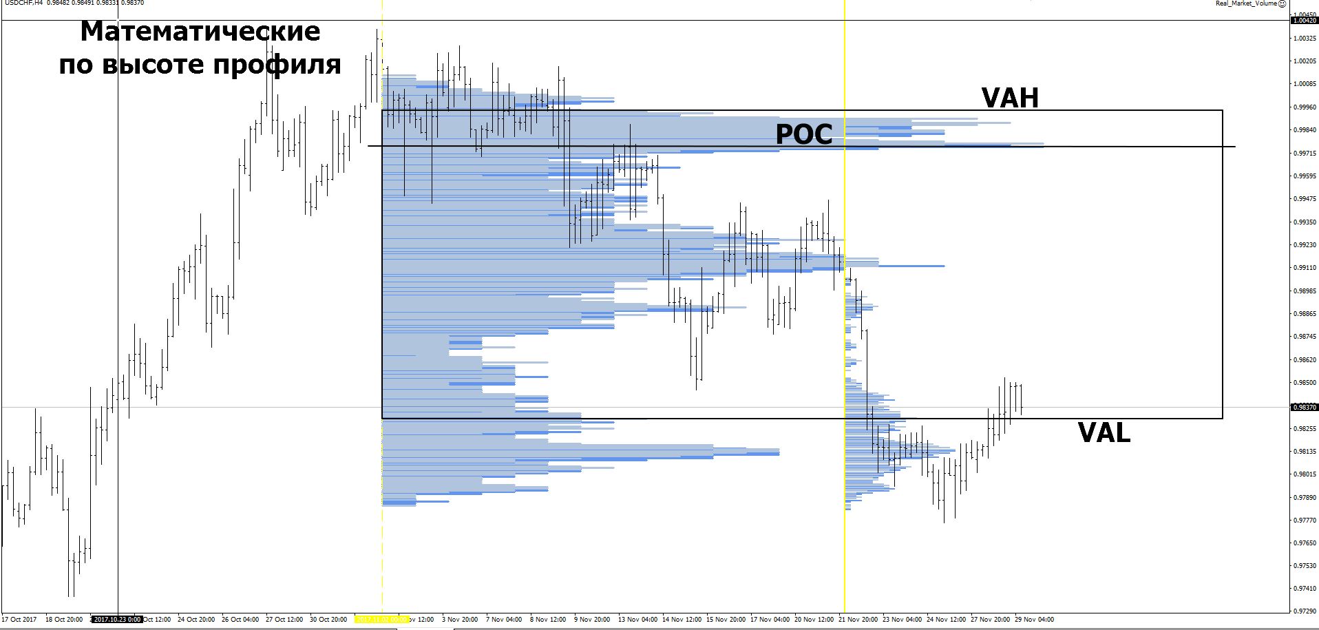 VAH (Volume area high) — это верхняя граница зоны стоимости. VAL (Volume area low) — нижняя граница зоны стоимости.
