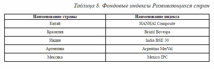 Биржевые индексы развивающихся стран