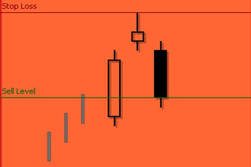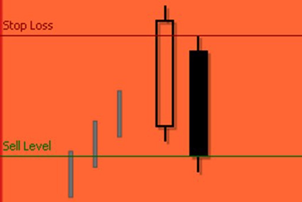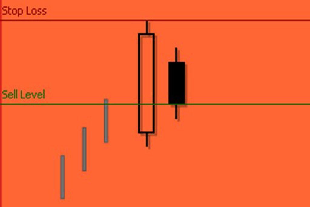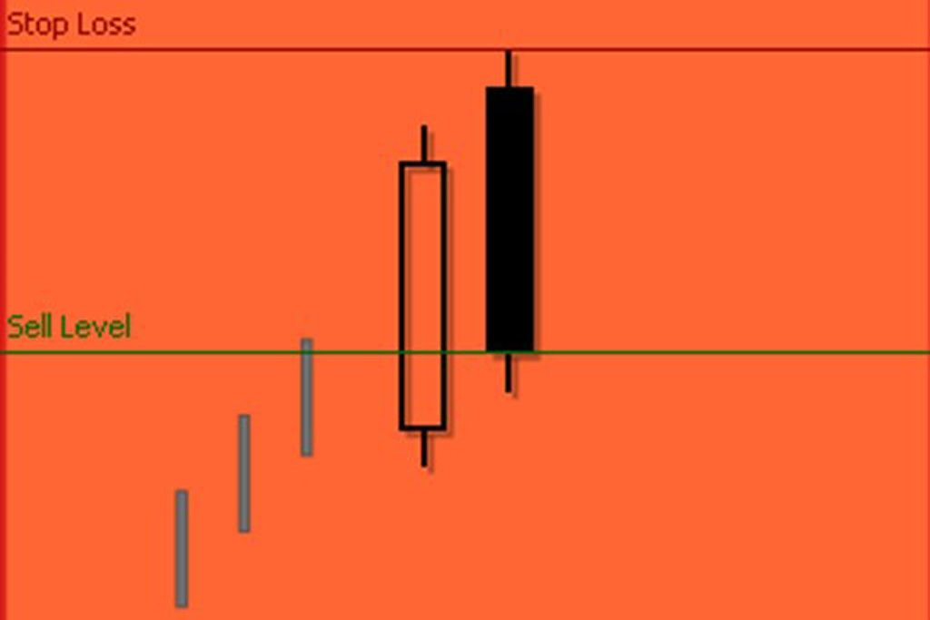 Котировка, по которой открылась темная свеча, больше котировки, по которой закрылась первая. А котировка, по которой была закрыта вторая свеча, больше той, по которой открылась первая.