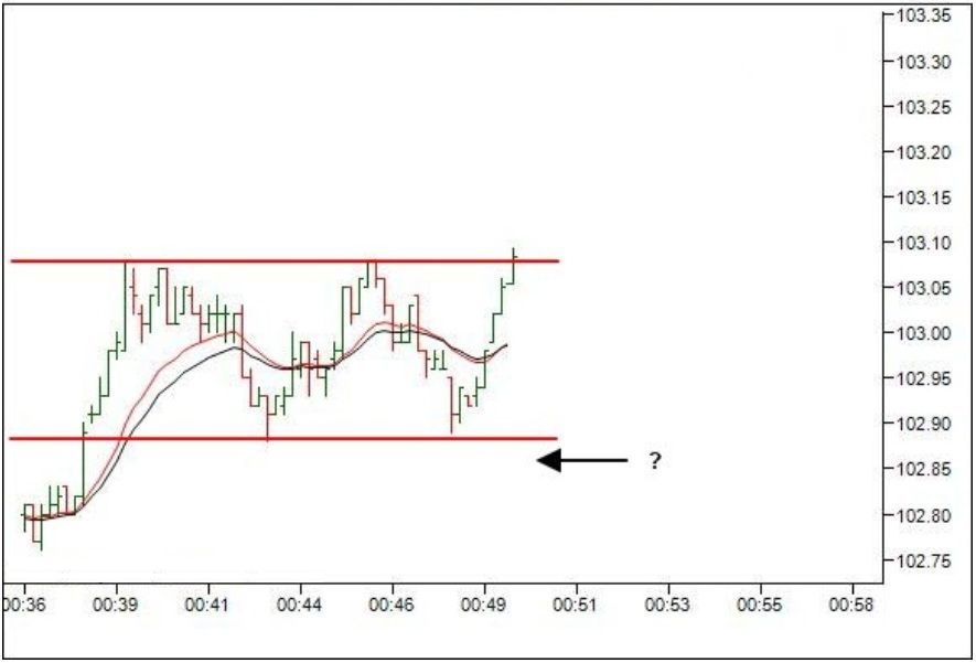 Посмотрите на график ниже. Цена движется в широком горизонтальном коридоре и вот-вот пробьет верхнюю границу.
