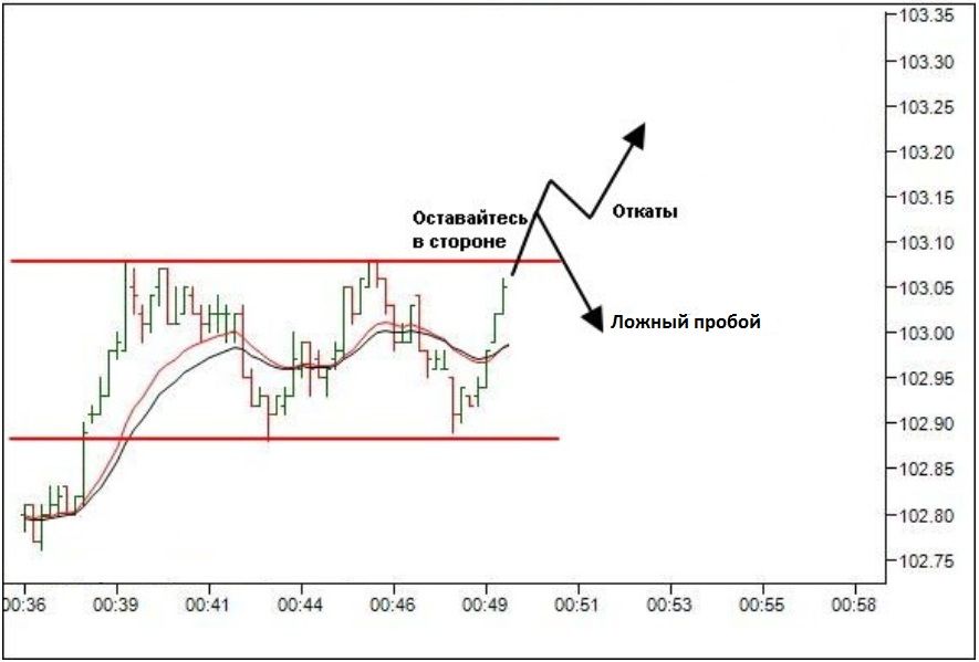 Некоторые крупные трейдеры, которые торгуют внутри коридора, сразу же фиксируют прибыль, как только цена готова совершить прорыв. Из-за этого сила тренда ослабевает, и цена вновь откатывается под уровень сопротивления.