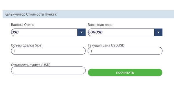 Жмем кнопку «Посчитать» и получаем стоимость пункта Форекс, равную $1.