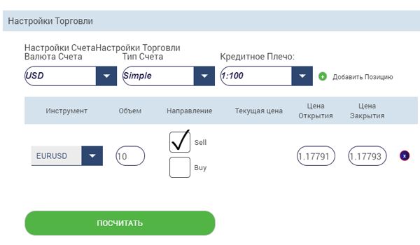 Интерфейс форекс калькулятора трейдера прост, понятен и удобен. Вносим исходные данные в соответствующие поля и жмем кнопку «Посчитать».