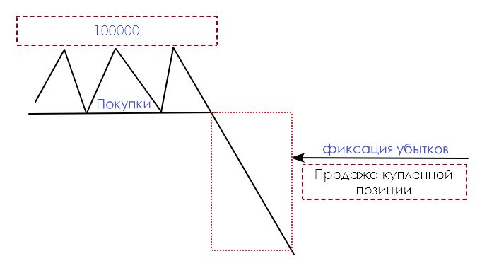С покупателями все на много проще. Они терпят убытки тогда, когда цена идет против их позиции, то есть вниз. В этом случае покупатель вынужден продать свою позицию и исполнять лимиты (все доступные ордера на покупку).