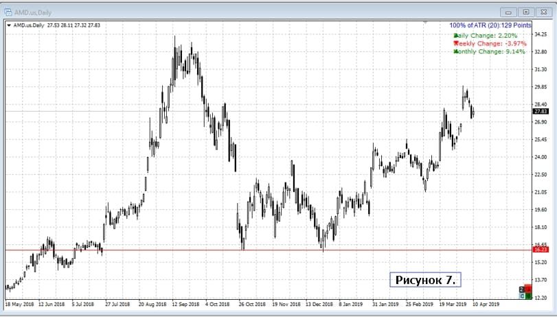 А вот в AMD, несмотря на аналогичную с TLT картину с уровнем, уже пришлось бы заходить совсем другим объёмом от общего капитала. Это акция, и здесь уже будет присутствовать риск более существенного гэпа.