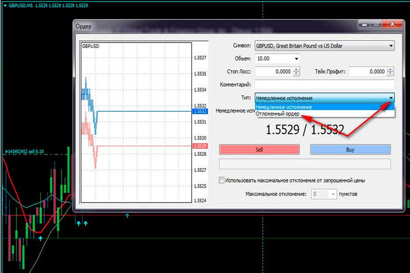 2. В открывшемся окне выбрать «Отложенный ордер».