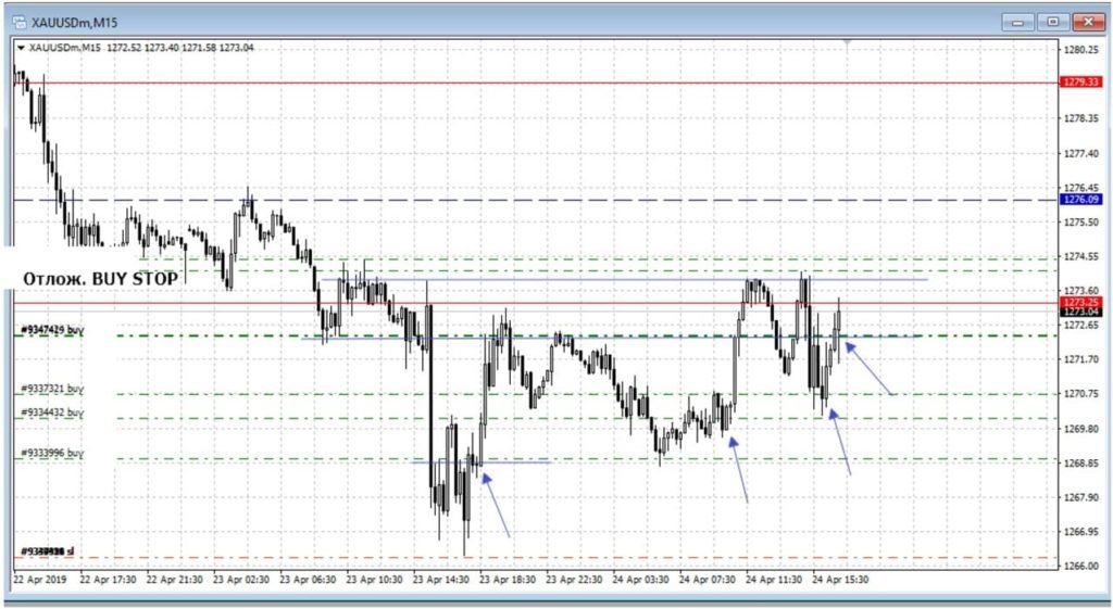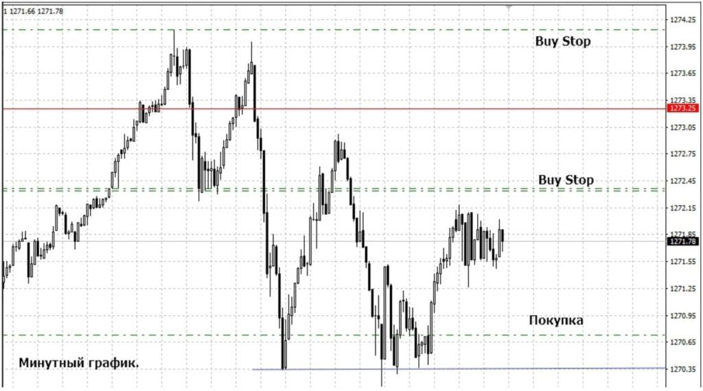 Я часть позиции брал на удержании 1270.35 (на минутном графике) и чуть ниже до этого, когда не смогли обновить новый low.