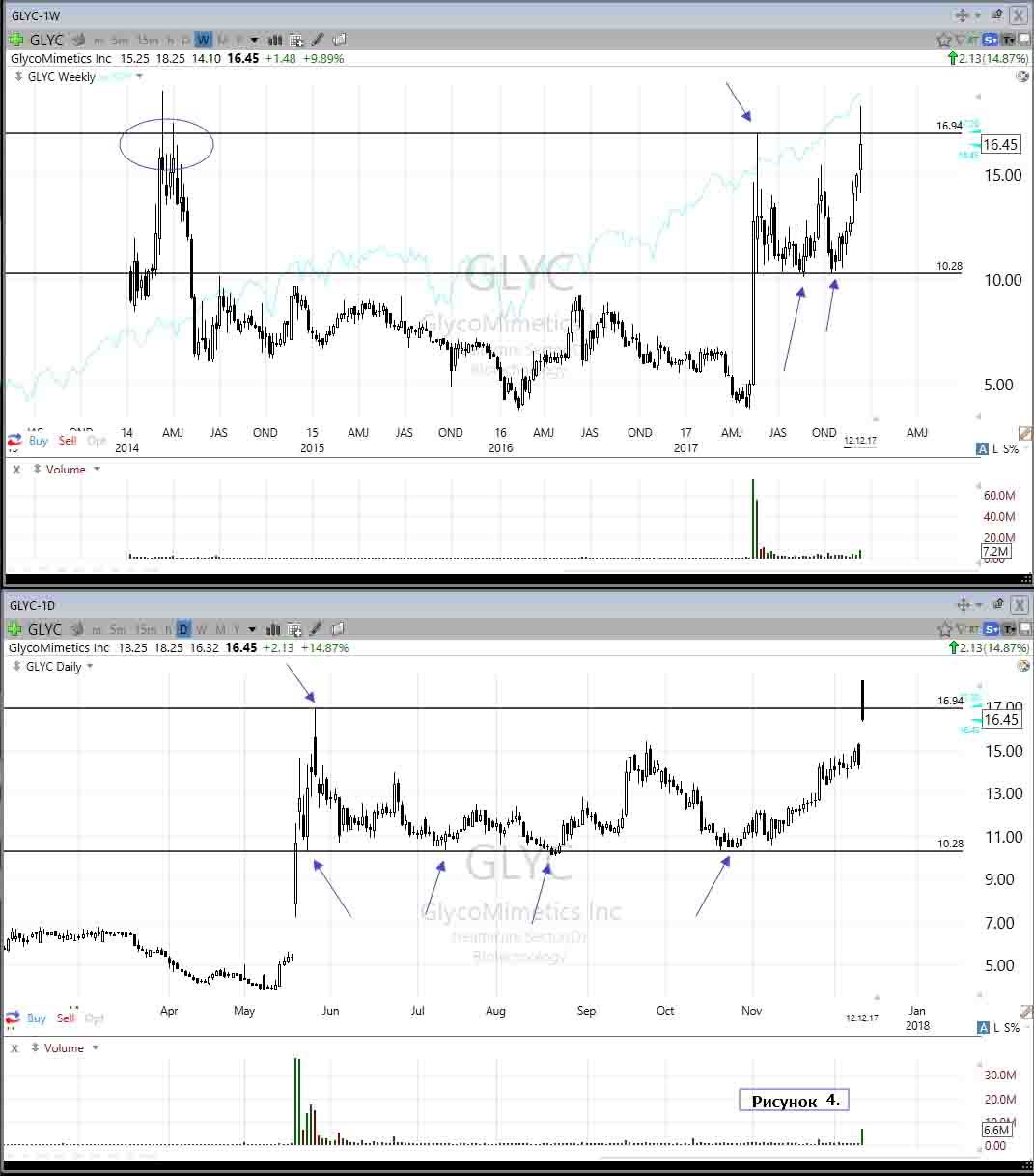 А теперь посмотрите на рисунок 4. Эмитент идеально технически удерживает 10.28 и продолжает рост к следующему сопротивлению 16.94. Это не камень в сторону фундаменталистов…