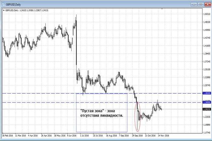 Но то, что случилось со швейцарским франком, и недавние события по GBP наглядно показали, что даже на ликвидном рынке Форекс на участках, ниже или выше которых пустота (например, EUR/CHF 1.20 или GBP/USD 1.26), использование повышенного плеча без диверсификации в зонах «пустой» ликвидности (плюс по фунту в ночное время также пониженная ликвидность, как дополнительный фактор) может привести к катастрофичным последствиям.