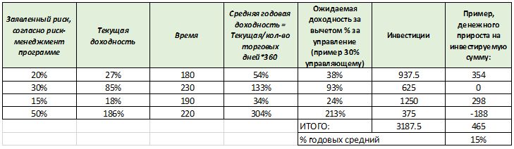 То есть, либо вы ищете иные инструменты и других управляющих, либо при распределении оставшегося капитала будьте готовы к просадке более 15 %.