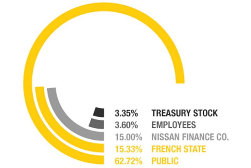 Акции корпорации выпущены на фондовый рынок под тиккером RNO. С момента продажи, благодаря устойчивости и надежности компании, активы обрели популярность среди инвесторов биржи Euronext.