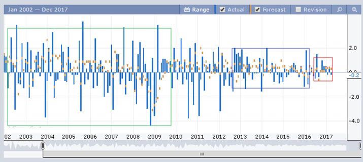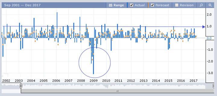 Если же брать индикатор Core Retail Sales (т.е. без учета автомобилей), то мы увидим, что в целом продажи практически вышли на докризисный уровень прироста в 1 %.