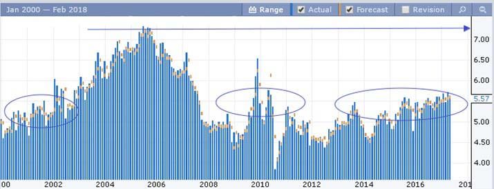 В данном случае было замедление в начале 2017 года, но уже со второй половины 2011 года наблюдается устойчивая положительная динамика.