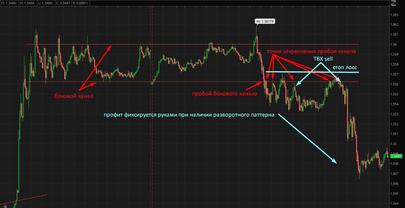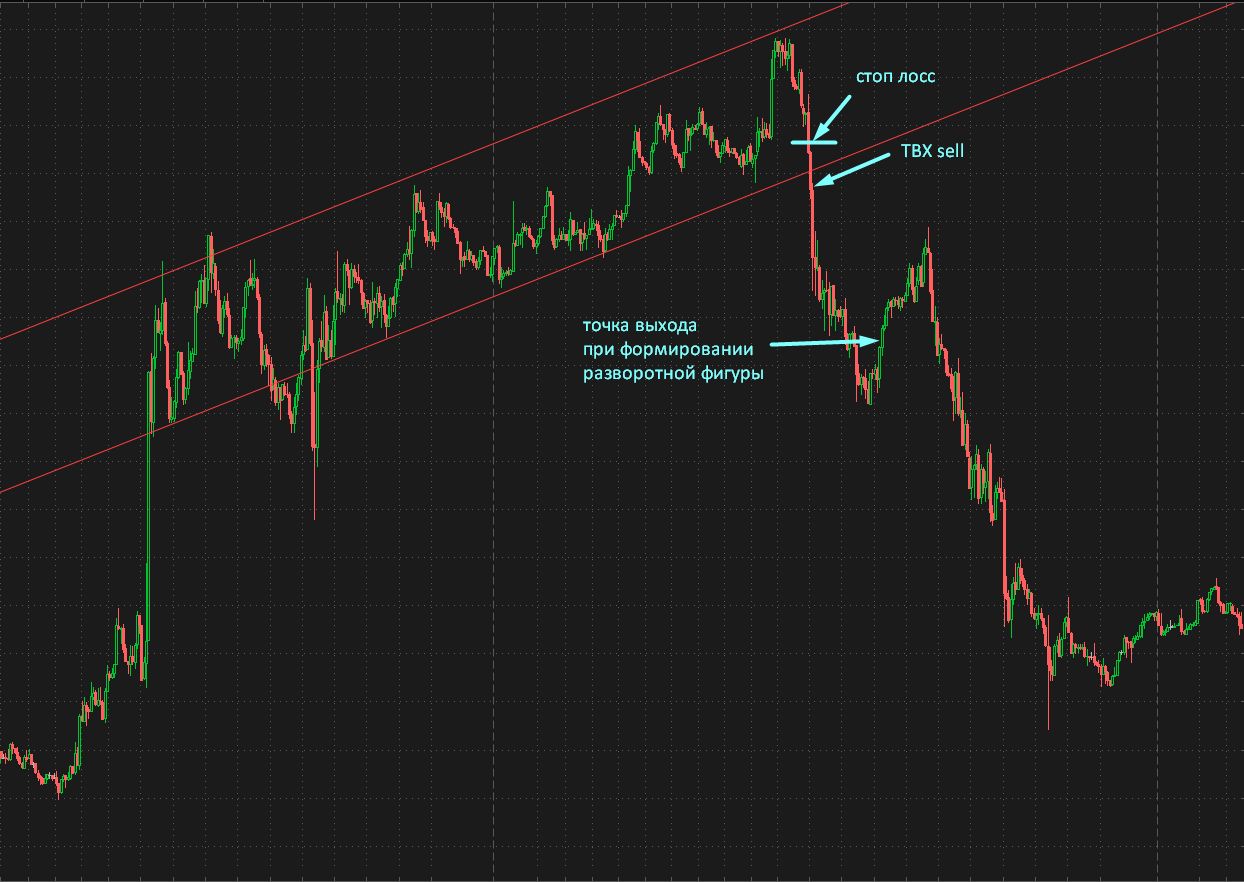 Чтобы было понятно, приведён пример пробоя в шорт восходящего канала в паре GBP/USD.