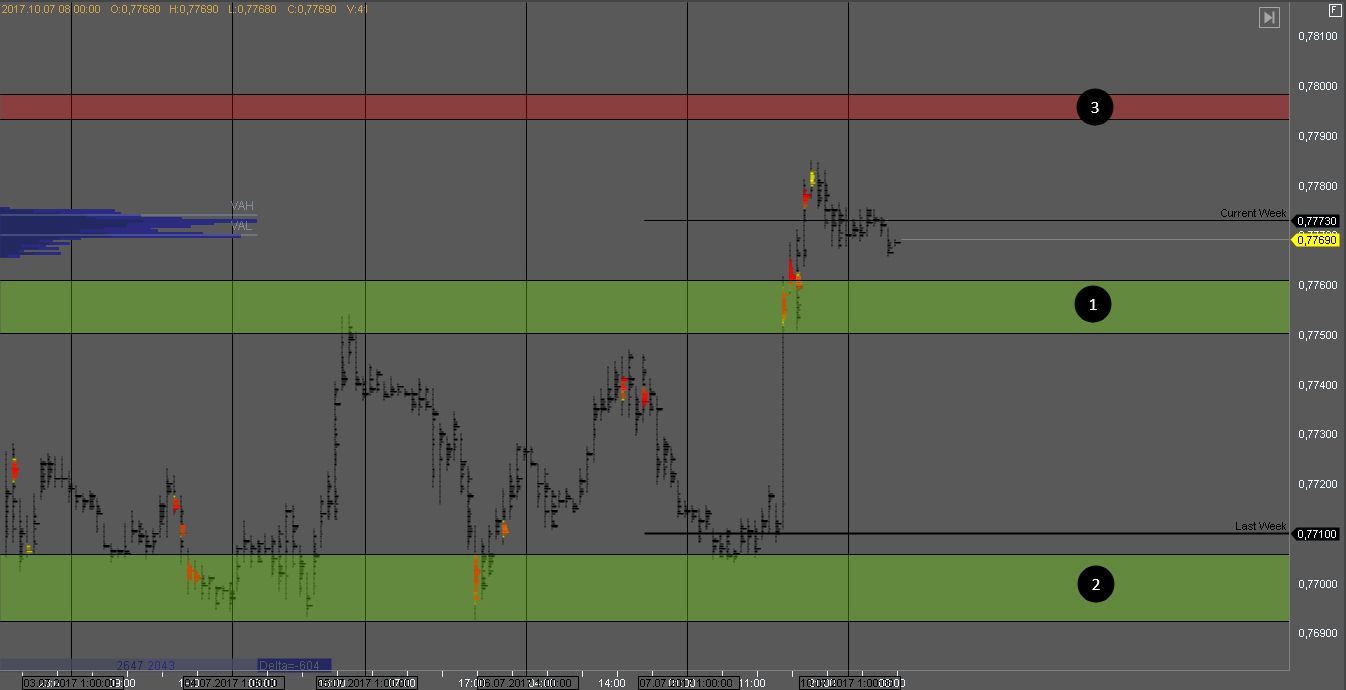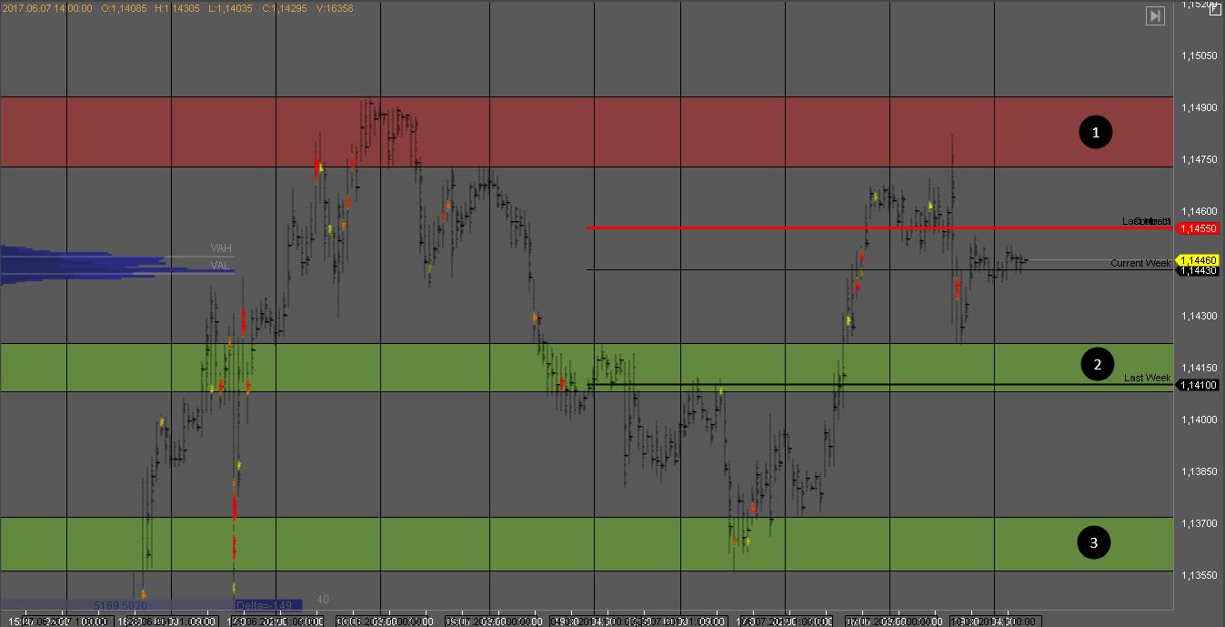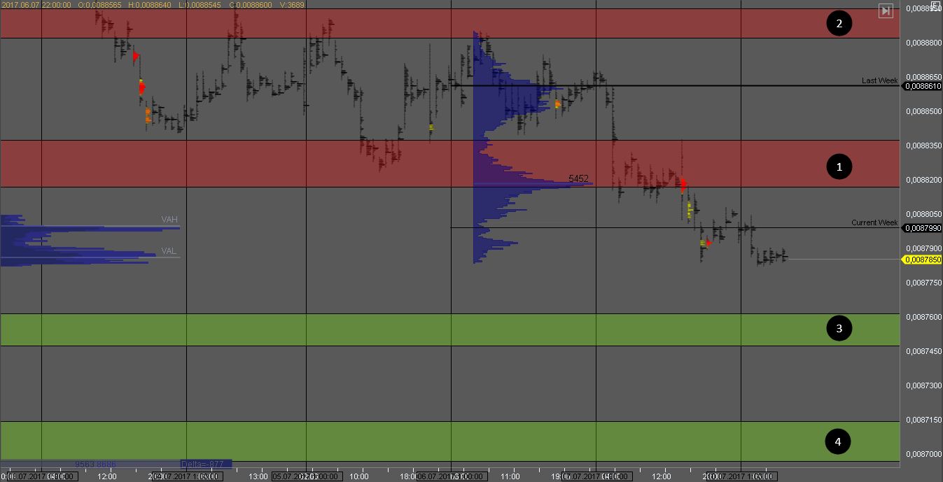 Покупатель протестировал зону 1 и продавец проявил свое присутствие, достигнув цель в зоне 2. На тесте поддержки 2 можно искать краткосрочные возможности для покупок, на тесте зоны 1 - продажи.