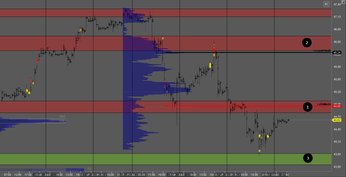 При пробое зоны 2, мы получим первые признаки формирования широкой консолидации с границами 1 и 3.