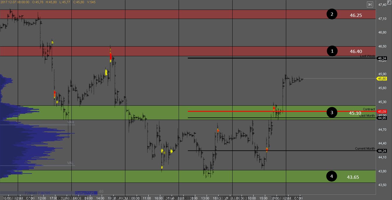 В случае пробоя поддержки 3 и объема контракта прошлого месяца, стоит посмотреть на реакцию рынка. Если цена не закрепиться ниже зоны 3, покупки должны будут возобновиться.