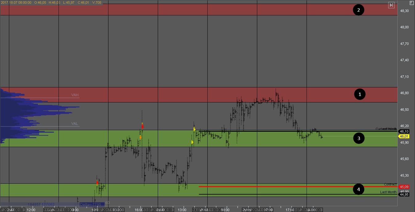 На тесте этого сопротивления можно поискать краткосрочные возможности для продажи. При пробое поддержки 2, мы получим признаки слабости покупателя.