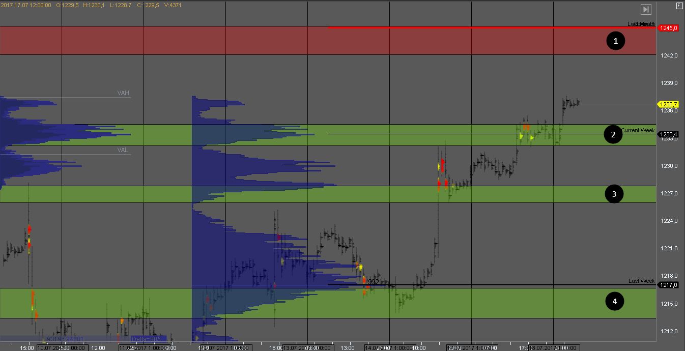Золото вышло из объема в зоне 3, и двигается к цели в зоне 1 под контролем покупателя.