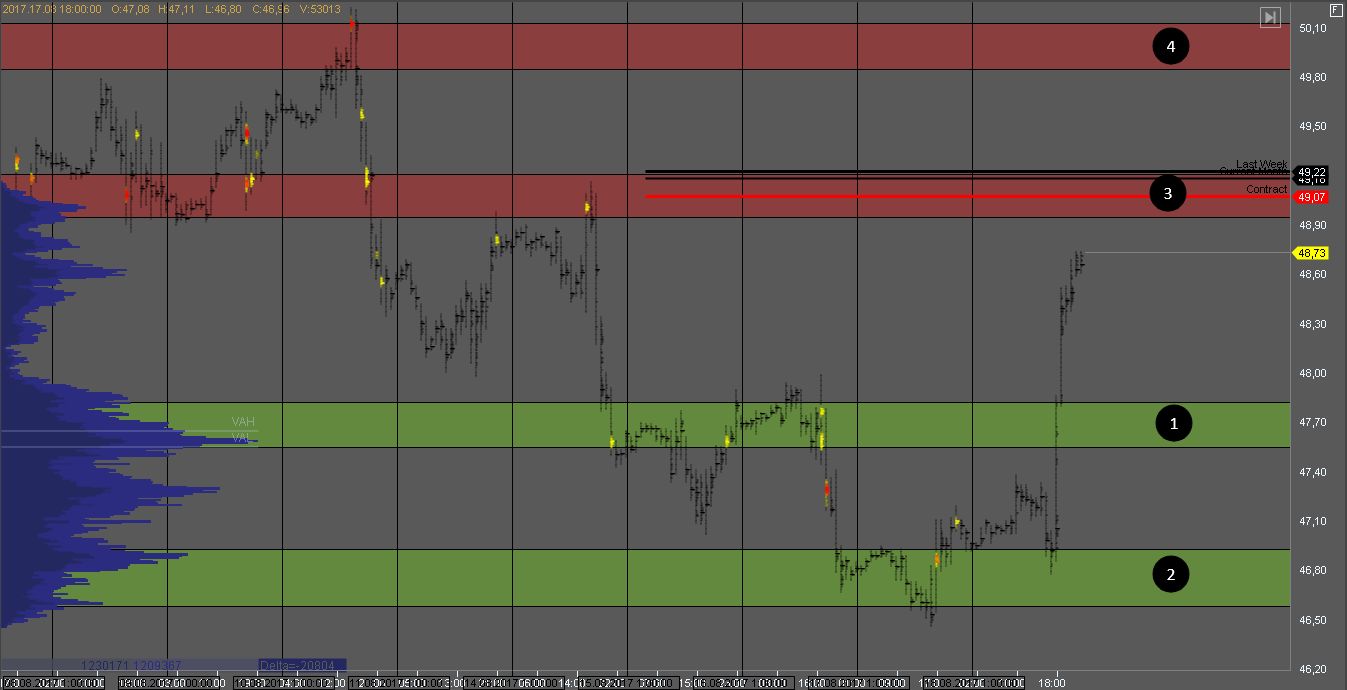 Цели роста находятся в зонах 3 и 4. Нужно учитывать, что в зоне 3 находятся объемные уровни контракта прошлой недели и текущего месяца, поэтому стоит ожидать агрессивной реакции на эти зоны продавца.