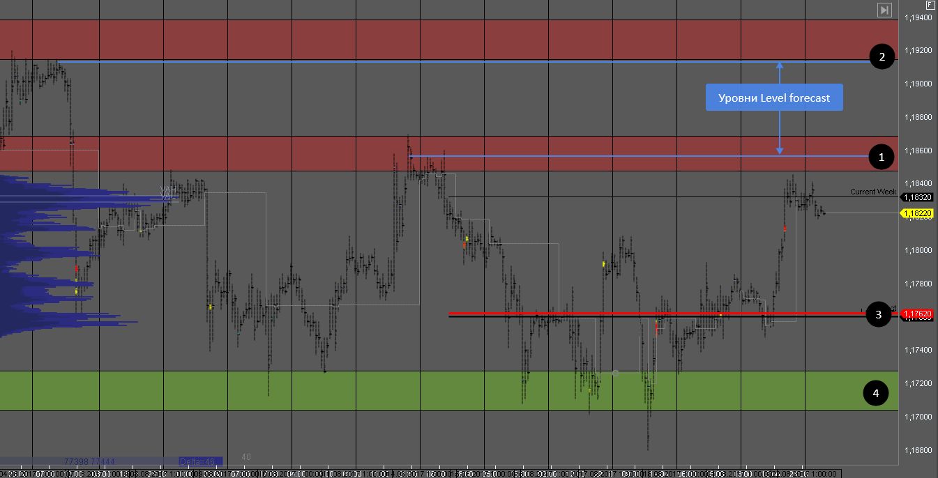 Пробой уровня сопротивления 3 даст возможность покупателям продолжить рост к цели в зоне 4. Пробой поддержки 1 покажет слабость покупателя, и снижение к цели 2 может возобновиться.