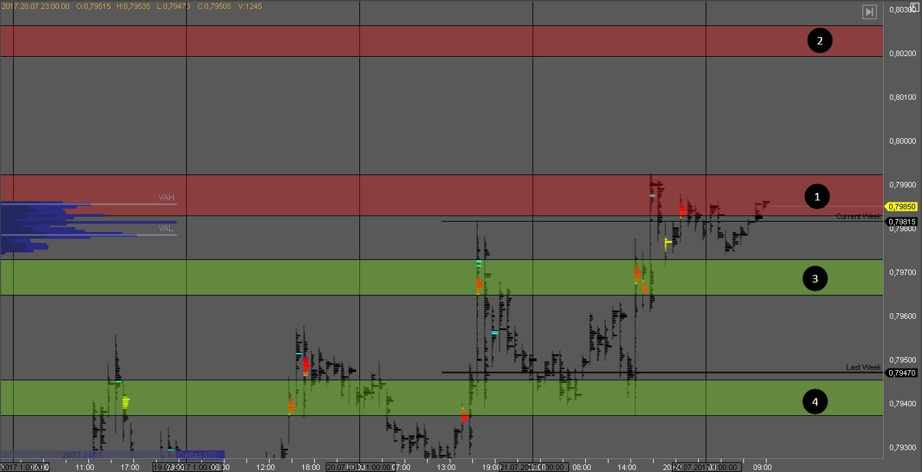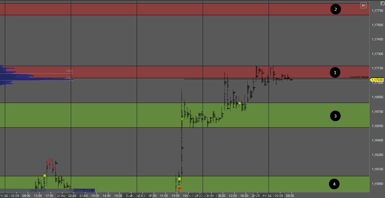 Покупатель контролирует котировку, и зона 1 выступает поддержкой, на которой можно искать возможности для покупок внутри дня.