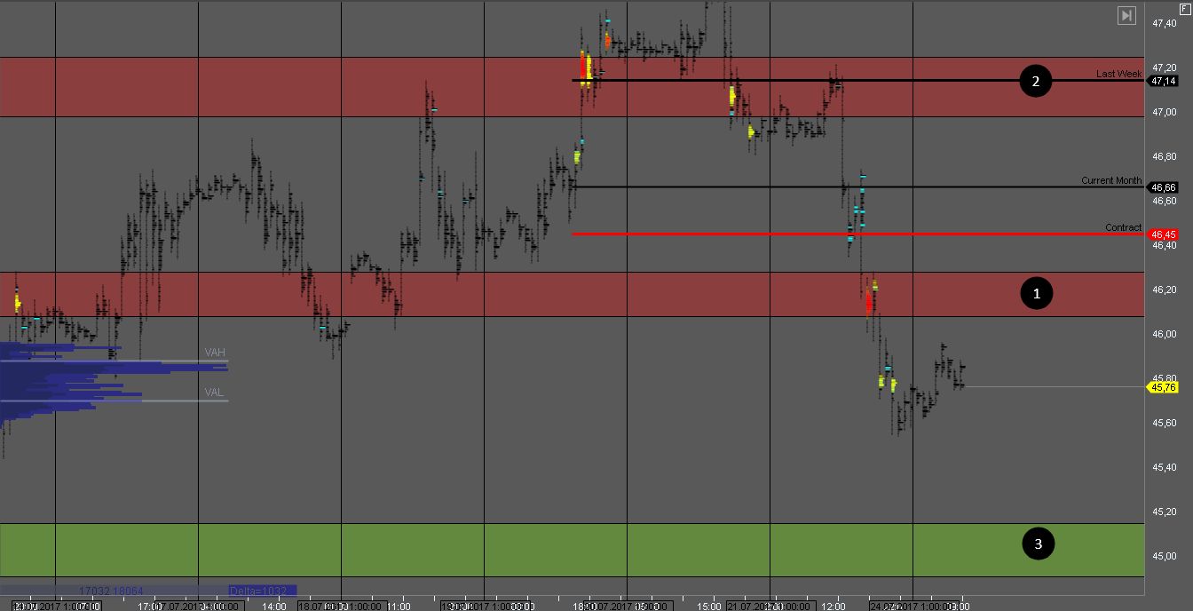Цель роста - в зоне 3. В случае пробоя зоны 1, мы получим признаки слабости покупателя и коррекция может затянуться.