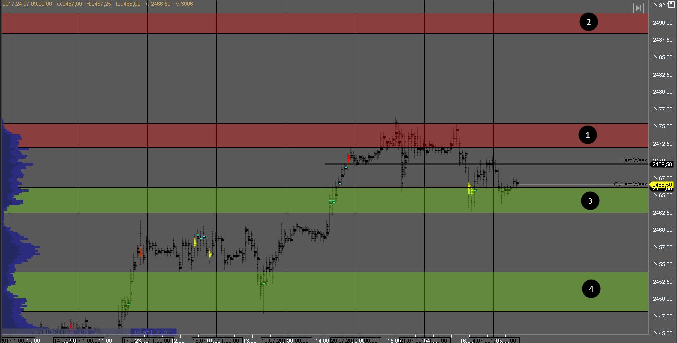 Продавец взял под контроль котировку в пятницу и пытается удержаться внизу. На тесте зоны 1 можно искать возможности для продажи с целью в зоне 3.