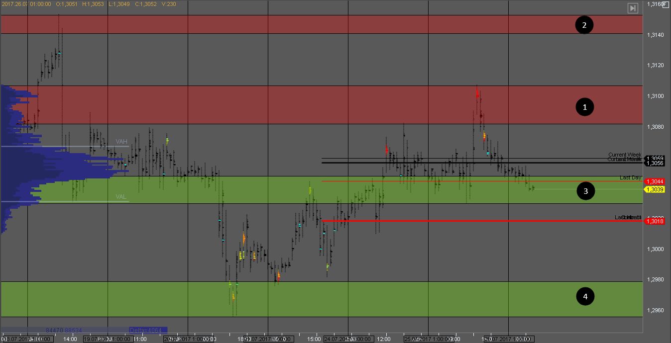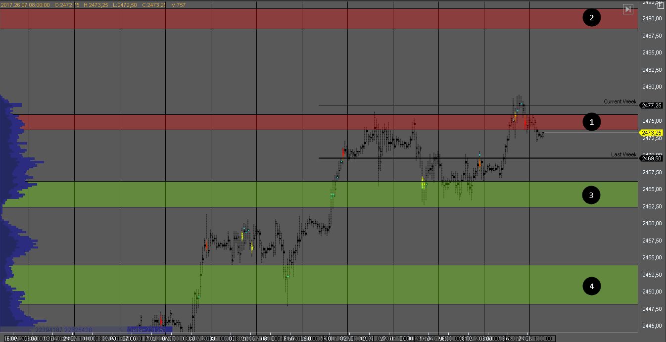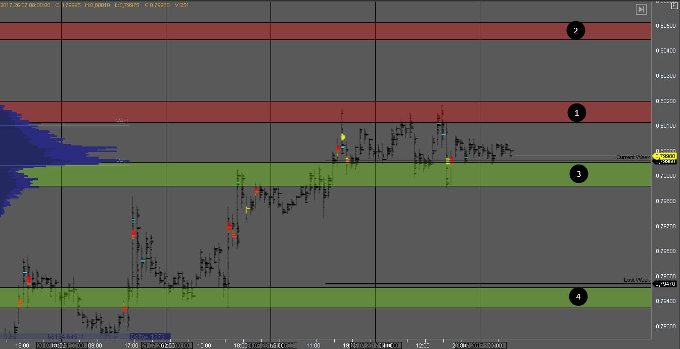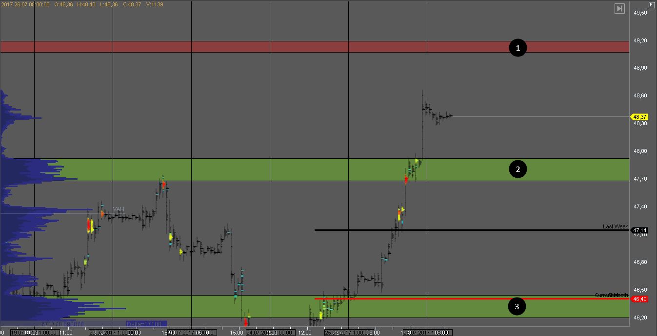 В случае пробоя зоны 2 мы получим признаки слабости покупателя, и стоит посмотреть на реакцию рынка.