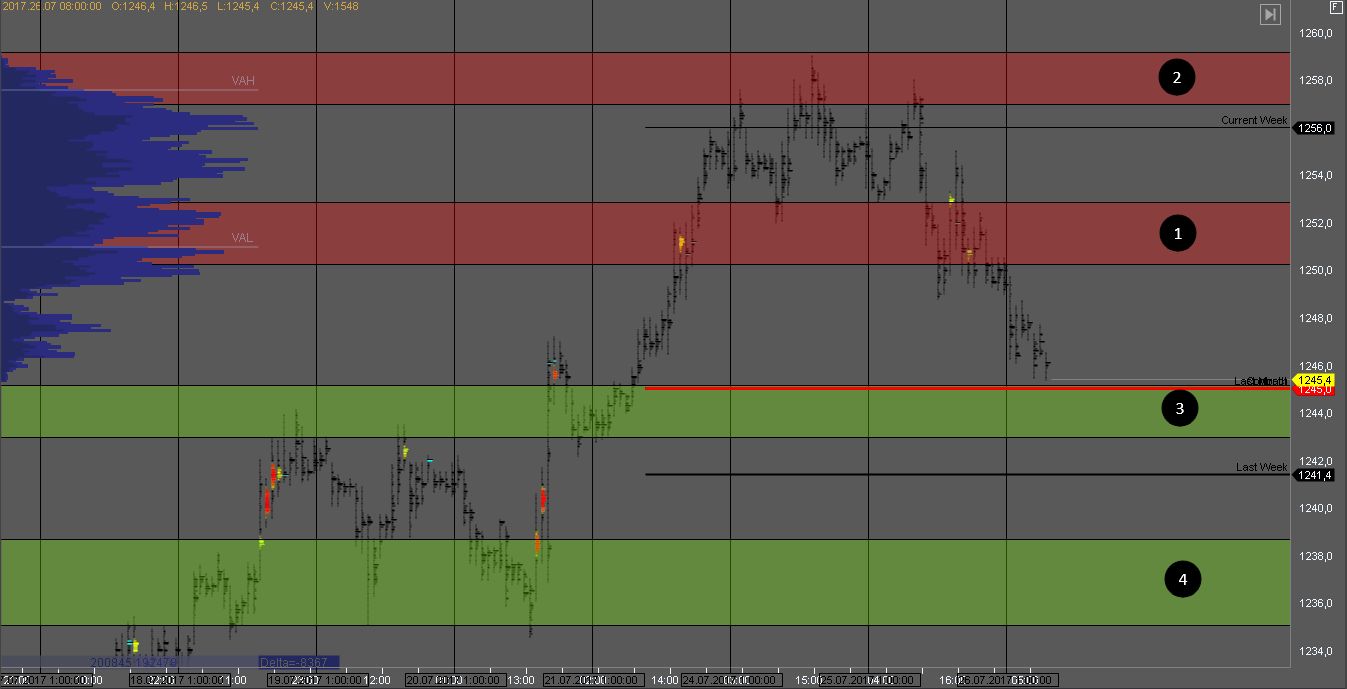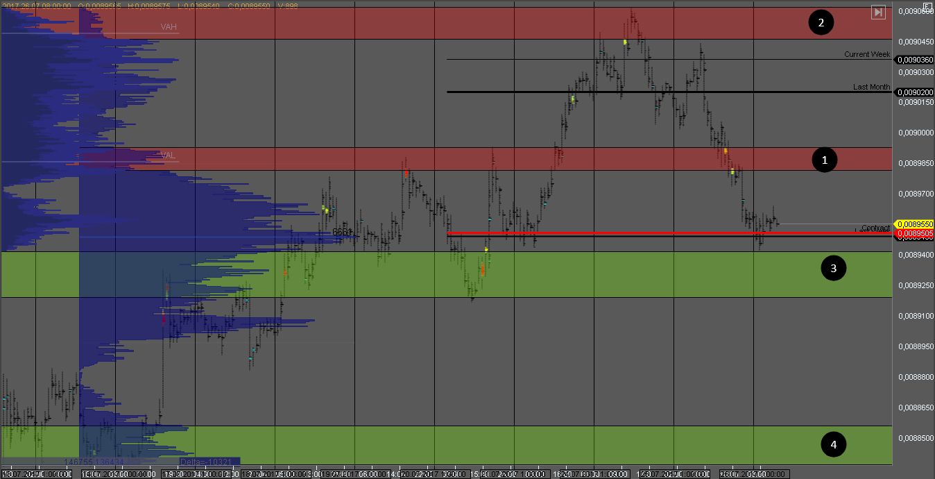 Но судя по недельному профилю, продавец все еще должен быть силен и риск пробития поддержки 3 и продолжения снижения еще высокий. На тесте зоны 1 можно поискать возможности для продажи.