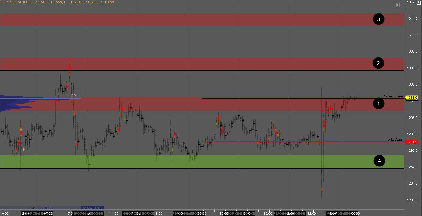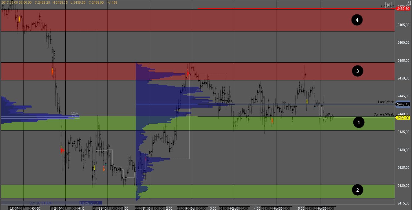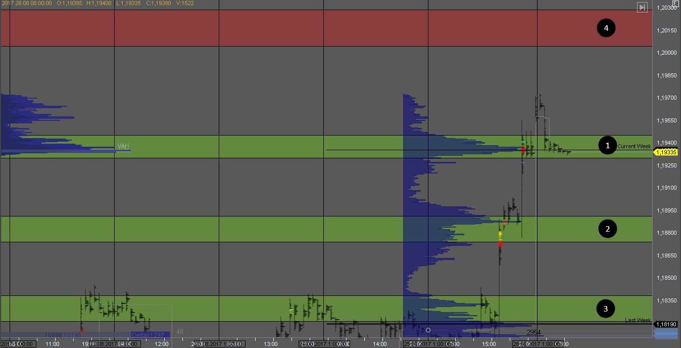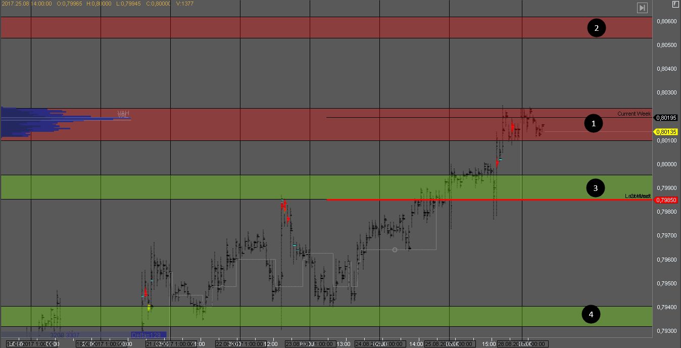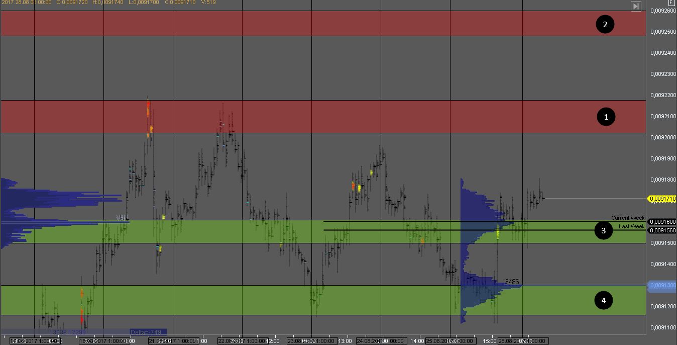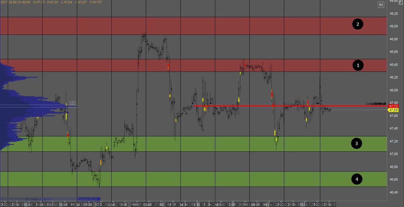 В случае пробоя зоны 3, мы получим признаки слабости покупателя и продажи могут возобновиться к цели в зоне 4. Цели для покупателей - в зонах 1 и 2.