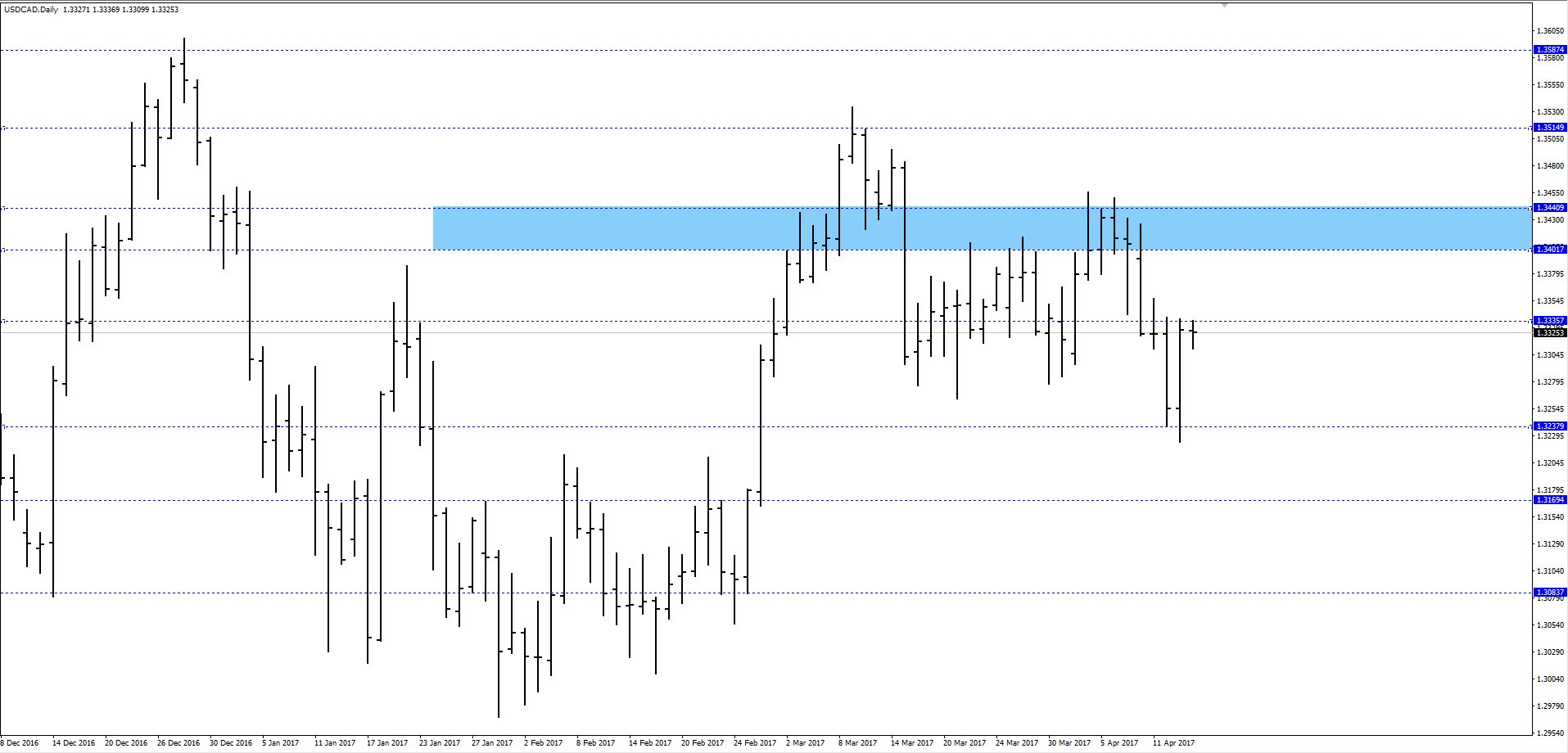 Пара доллар/канадец удерживается на уровне средней цены на позицию продавца, лимиты которого защищали ценовой уровень в моменте. Сильный ложный пробой лоу проторговки не дал результата.