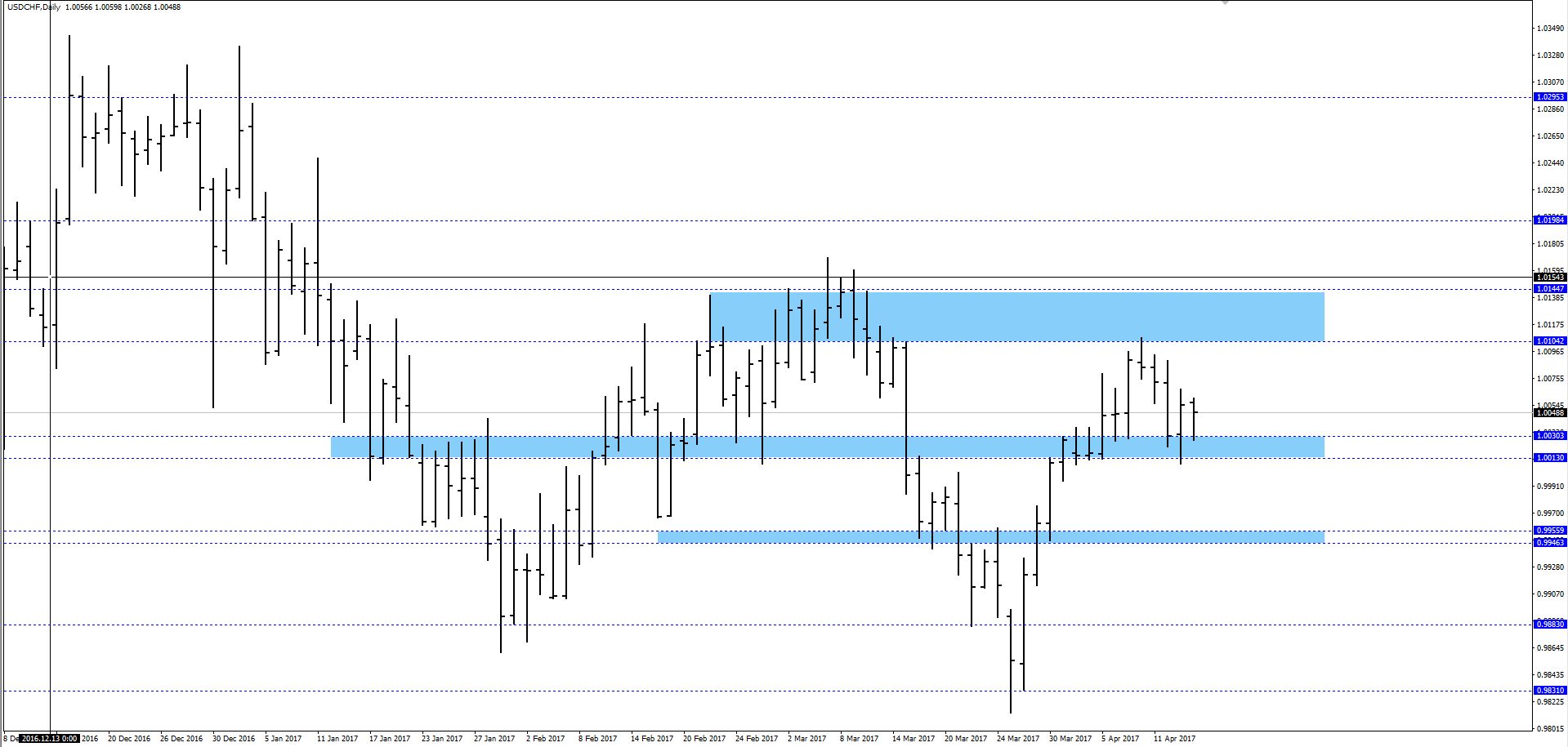 Пара доллар/швейцарский франк находится в импульсе, но на пути его - сильная область сопротивления, оба уровня которой очень сильны.