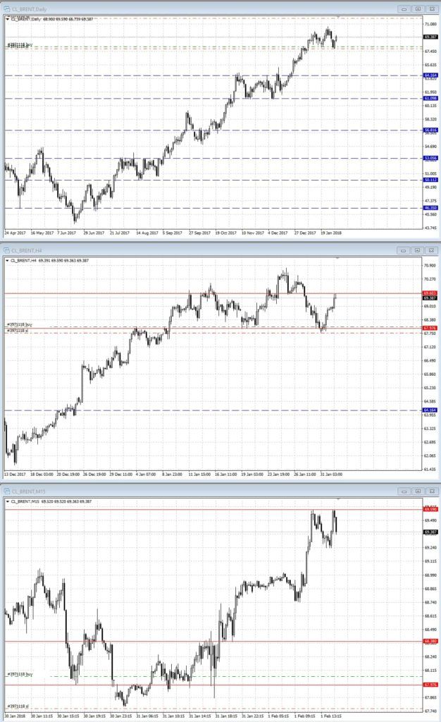 Технически нефть откатывается от вершин до ключевой цены 67.9, инициируя ложный пробой.