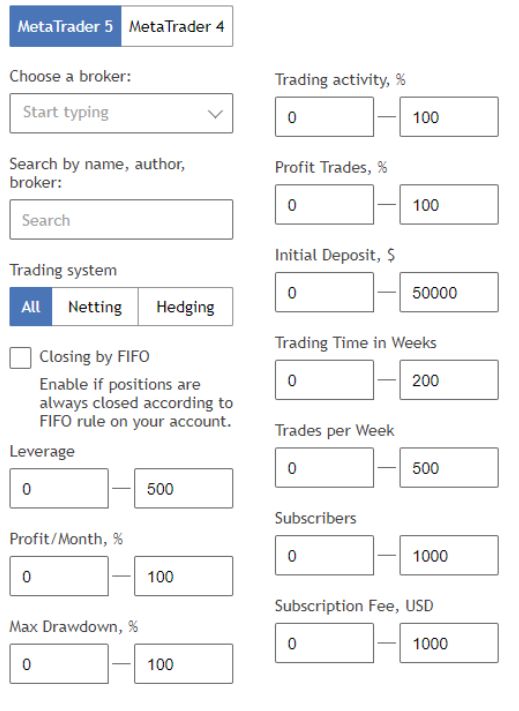 Подготовка подразумевает тщательный выбор из торговых сигналов не только по доходности, но и по риску. В этом плане на сайте есть удобные настройки фильтра для подборки именно необходимых вам параметров и терпимости к риску и желаемой доходности.