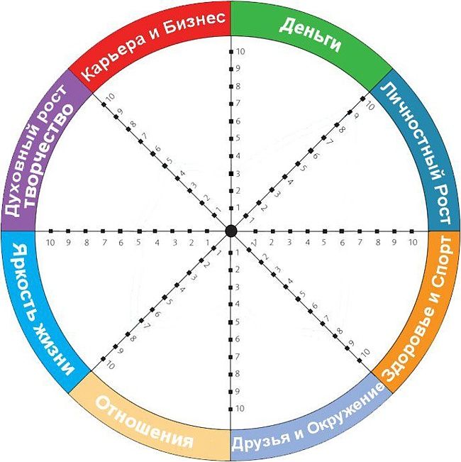 Составлять цели нужно, учитывая области, обозначенные в колесе.