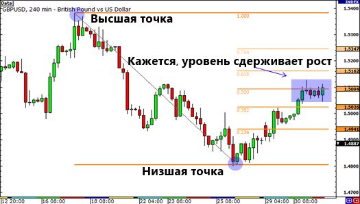 Схема торговли от уровней Фибоначчи предполагает определенную последовательность: