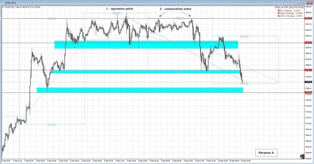 Но вернёмся к USTEC и рисунку 4. Момент идеи и вход я выкладывал в своём обзоре от 09.09.2019, когда инструмент ещё не сдвинулся от уровня 7881.